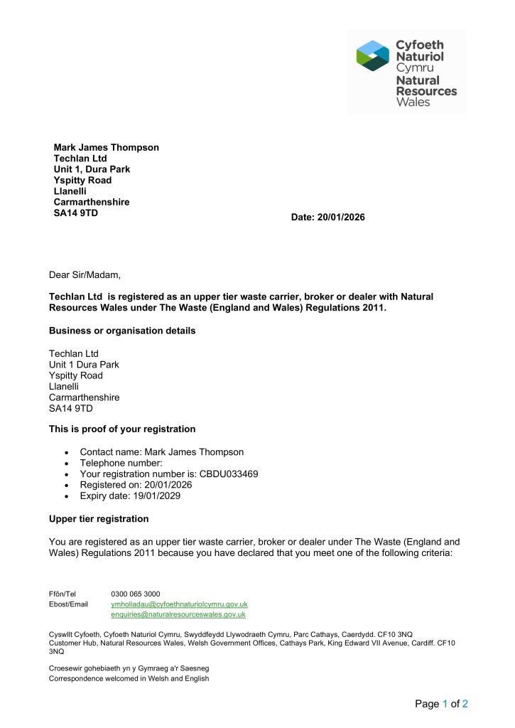 Techlan is able to provide full traceability of all waste materials that it processes and provides a safe, reliable, and professional recycling service to its suppliers and customers.
